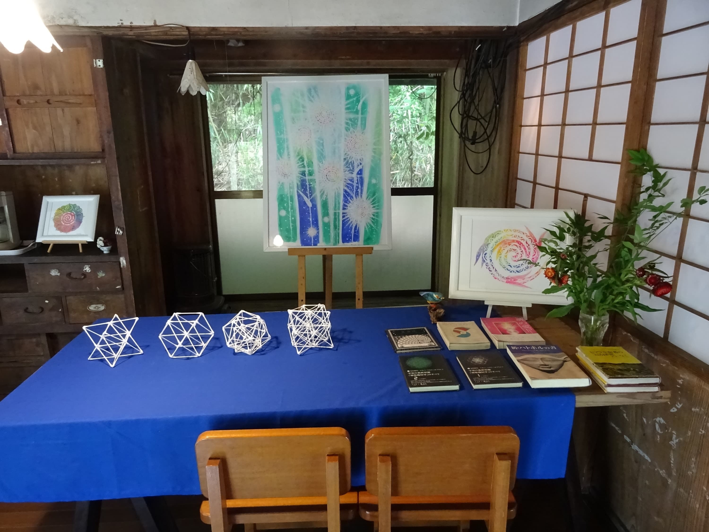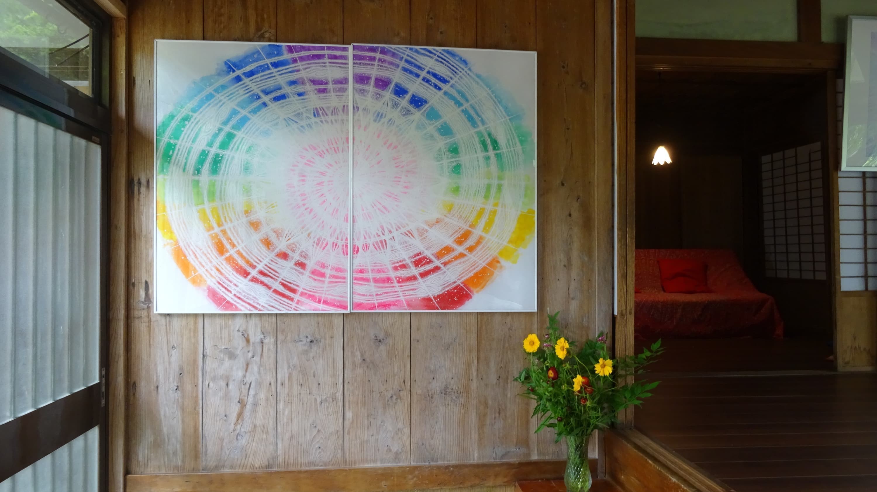 源の愛と光を現した、水口麿紀のレインボーカラーのエネルギーアートが展示されていて、聖地と絵のエネルギーによって、レインボーハウスに無限の愛のエネルギーがあふれ、心地良い調和を感じ、源や宇宙と繋がることができます。